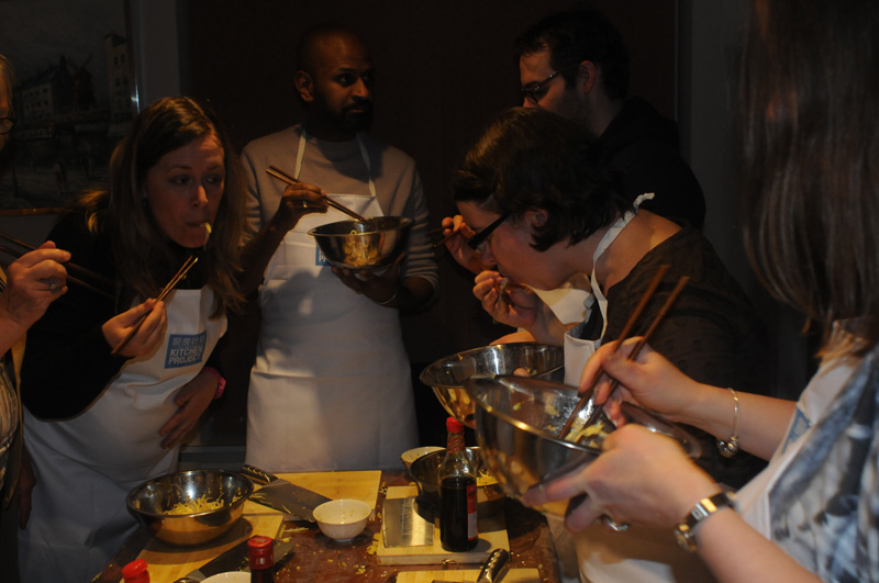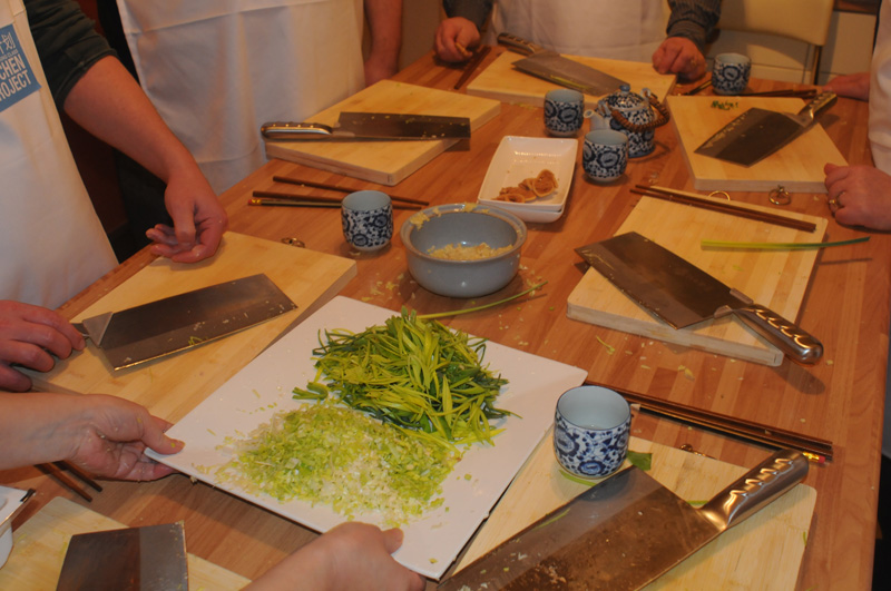 Ruth graciously invited us into her cosy home and kitchen. With friends and family gathered around the table, we learned about fish finger sandwiches as we chopped cabbage and smashed ginger.